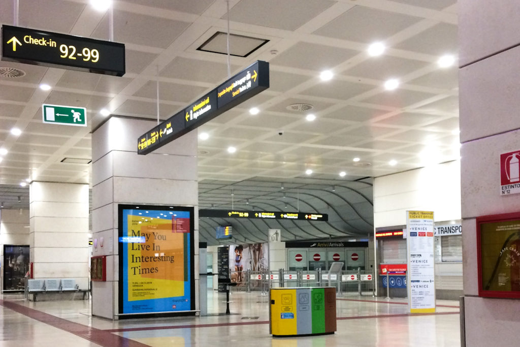 Začelo se je. Ura je 5 zjutraj na beneškem letališču. Najprej sledi ogled kompleksa, spoznavanje s tablami, oznakami, usmerjevalnim sistemom. Prijazna uslužbenka EasyJeta nama razloži sistem in naju napoti na konkurenčno družbo, Air Canada.